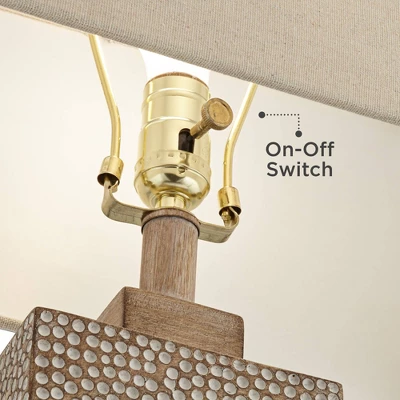 Ideal for modern farmhouse rooms or for adding a contemporary luxe look to a favorite space, these lamp designs will shine in any setting. From the 360 Lighting brand, the pair of lamps feature hammered rectangular bases with a footed pedestal base in a faux wood finish. Up top are oatmeal fabric rectangular shades that complete the look.