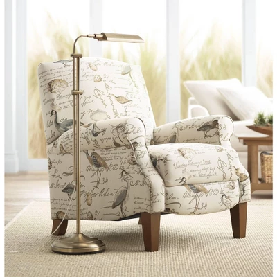 Designed for excellent lighting, this plated brass pharmacy floor lamp is a useful addition to a home office or living room area. It delivers energy-efficient LED illumination with a built-in light and has an adjustable height feature. This lamp is accented with a toggle switch and clear cord for easy usage.