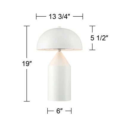 Elegant, modern vibes make up the Felix white table lamps set of two with dome-shaped shades. From the 360 Lighting brand, the tapered metal bases showcase a beautiful white finish. Matching white dome-shaped shades complete the contemporary look.