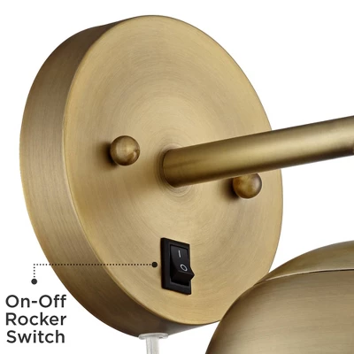 - Antique brass finish arm and wallplate. Metal construction.