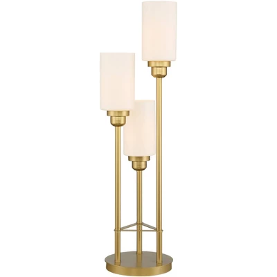 - 3-light console table lamp with glass shades. Modern luxe style from the 360 Lighting brand.