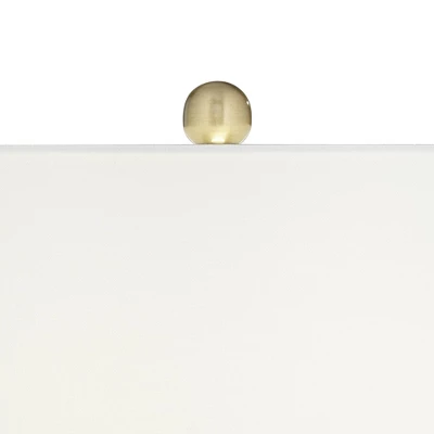 - White finish lamp base. Ceramic construction. Gold finish metal accents.