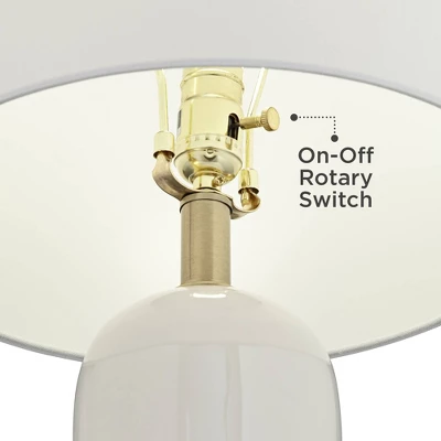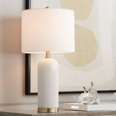 Add sleek designer style to living rooms or sitting areas with this elegant modern table lamp. From the 360 Lighting brand, the lamp features a streamlined base crafted in a white ceramic. Gold finish metal accents at the base and neck provide a luxe accent. The design is ideal for modern or coastal style room decor.