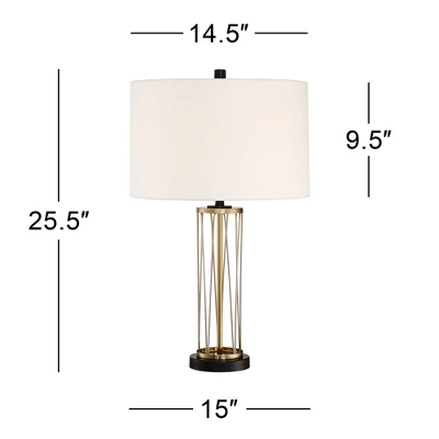 The modern and open design of this set of table lamps is undeniably eye-catching. From the 360 Lighting brand, the lamps combine modern, Mid-Century influenced style with up-to-date tech in the form of built-in USB ports. Use the USB ports to keep all your phones and electronic devices charged up and ready to use. The open bases come in a stylish gold finish, offering a sophisticated look for living rooms and sitting areas. Up top are off-white fabric tapered drum shades that complete the designer look.