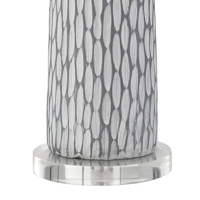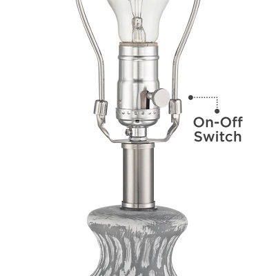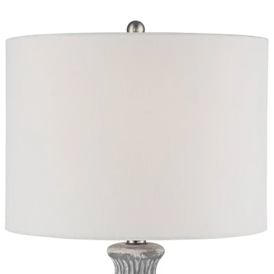 360 Lighting Patrick Modern Coastal Table Lamp With Round Riser 27 1/4″ Tall Gray White Wash Ceramic Drum Fabric Shade For Bedroom Living Room Home