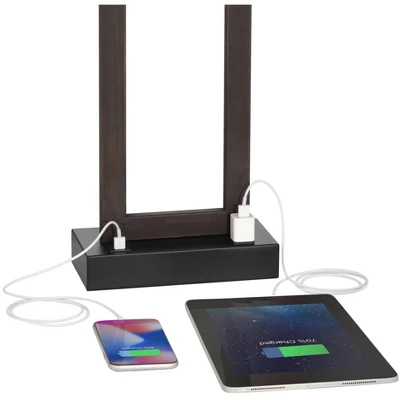 Put your room in a contemporary light with this modern table lamp from the 360 Lighting brand. A minimalist design, this lamp comes in a handsome bronze finish over a rectangular metal frame with an opened-up center. A rectangular oatmeal fabric shade on top completes the stylish geometric look. Best of all, this lamp has a USB port and an electrical outlet on the base, making it easy for you to charge your various devices.