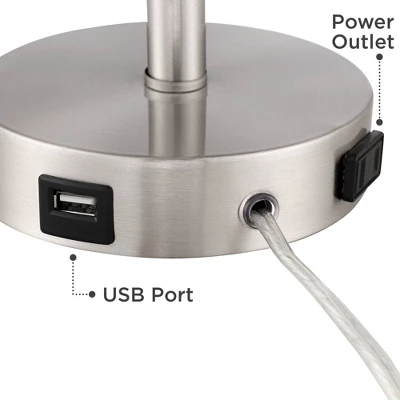 - Each lamp has a built-in USB outlet and a plug-in power outlet. Built-in full-range dimmer switch on base.
