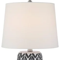 - Off-white color tapered drum shade with an abstract silver circle pattern. 8-foot long cord.