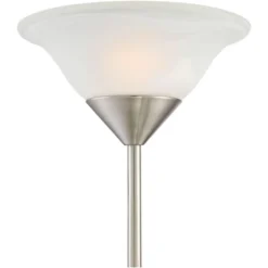This stylish floor lamp will bring a sense of sophistication to your decor with a blend of traditional and contemporary design elements. From the 360 Lighting brand, it features a traditional vintage-look lamp base that comes in a distressed antique white finish. Up top is a contemporary look off-white shade with an abstract silver circle pattern. The pairing makes an wonderful room accent for a living room, hallway, and more.