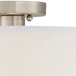 360 Lighting Adams Modern Ceiling Light Semi Flush Mount Fixtures 14″ Wide Set Of 2 Brushed Nickel White Fabric Drum For Bedroom Kitchen Living Room