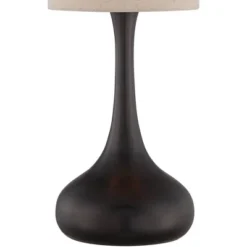 360 Lighting Modern Table Lamp 24.5″ High Espresso Bronze Metal Droplet Linen Cylinder Shade For Living Room Family Bedroom Bedside Office